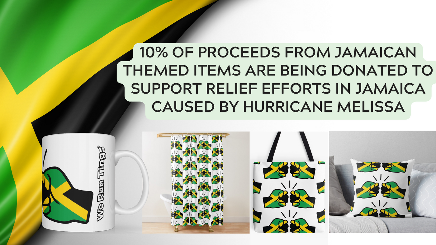 As the familiar Jamaican saying goes, "we likkle but we tallawah", our Jamaican themed items are our most popular and best sellers. We have a large range of items, including t-shirts, hoodies, cups, cushions, shower curtains, bathmats, etc.