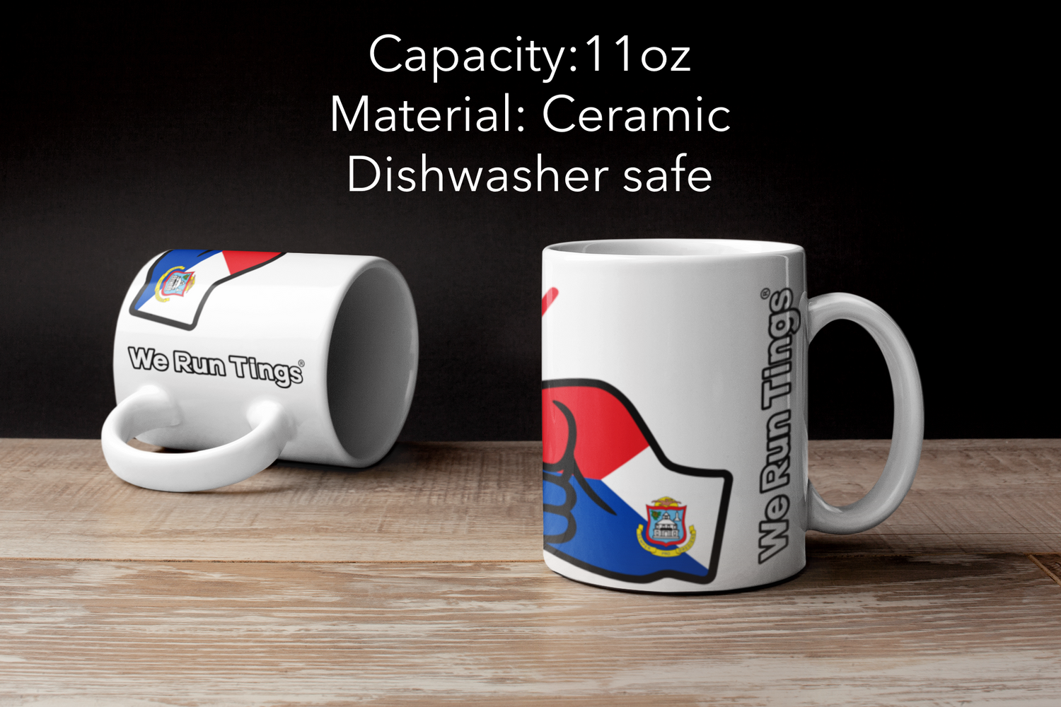 We Run Tings, St Martin Mug - White is backordered and will ship as soon as it is back in stock.